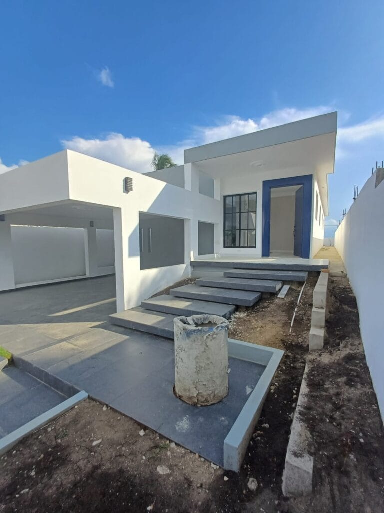 Esta espectacular casa, recién construida con materiales de alta calidad, ofrece un diseño moderno y funcional en un solar de 266.72 m², con una construcción de 156 m². La propiedad cuenta con 3 habitaciones, incluyendo una habitación principal con baño privado y vestidor, mientras que las otras dos disponen de clóset.